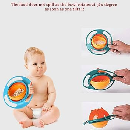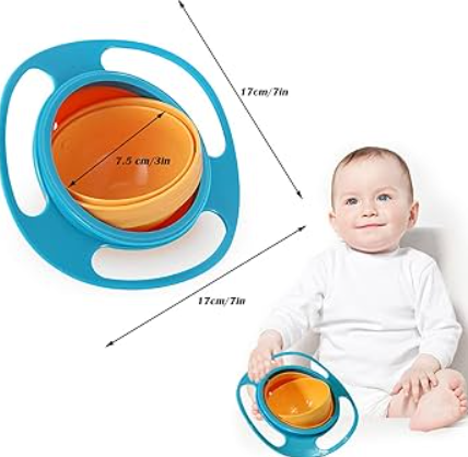 Inner bowl rotates 360 degrees on gyroscopic axis, ensuring open side always stays up and prevents food from spilling onto the floor.