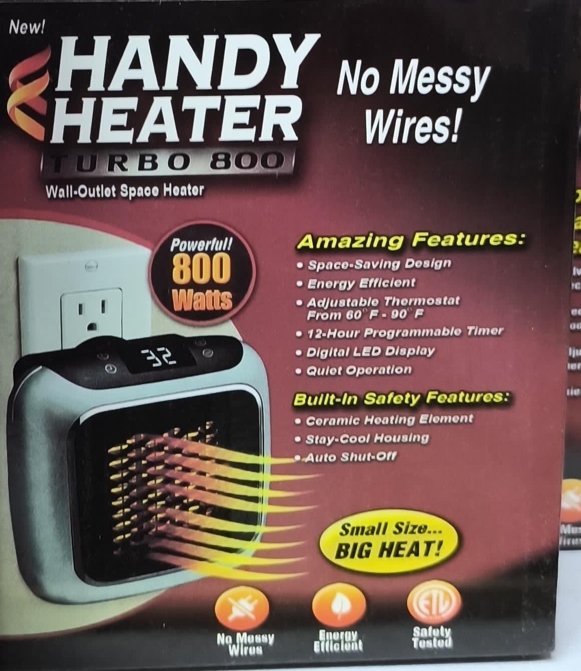 - Powerful 800 watts handy heater turbo 800.