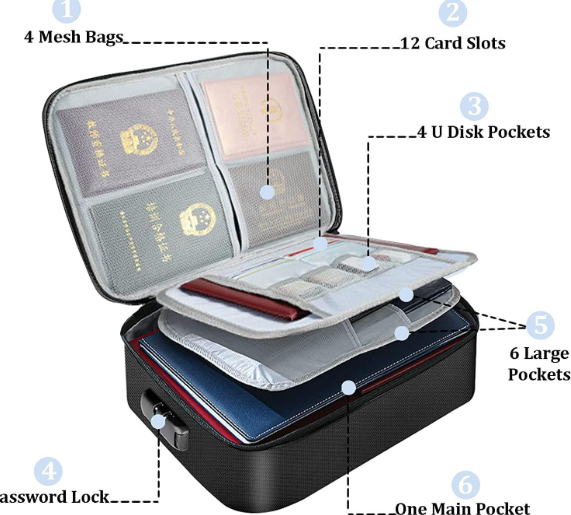 • Versatile Capacity – Ample space to hold passports, certificates, legal documents, files, cash, cards, jewelry, tablets, and photos.