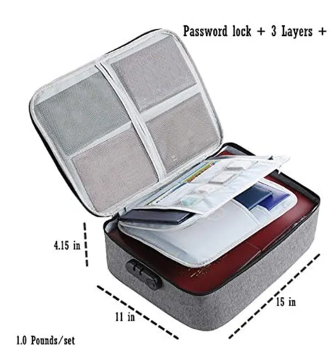 Fireproof and Waterproof Document Organizer Bag with Lock