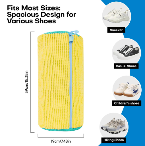 Perfect for busy households, this shoe washing bag saves time, reduces noise in the machine, and extends the life of your footwear.