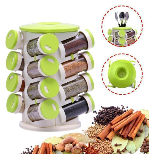 Trueware 16-in-1 Revolving Spice Rack with Cutlery Holder – Smart, Stylish & Space-Saving Kitchen Organizer